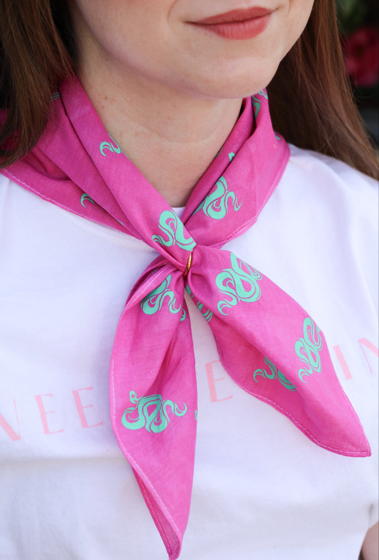 I have been in a huge bandana phase lately, with a growing collection of colors and styles to suit any ensemble in my wardrobe. When a splash of color and fun is needed, a bandana has been my go-to accessory. Thanks to my bandana madness, I was introduced to Christian Wash Garvey and her amazing line of hand dyed, hand printed 100% cotton bandanas and I fell in love. When I found out that she would do custom orders, I said YES PLEASE!
