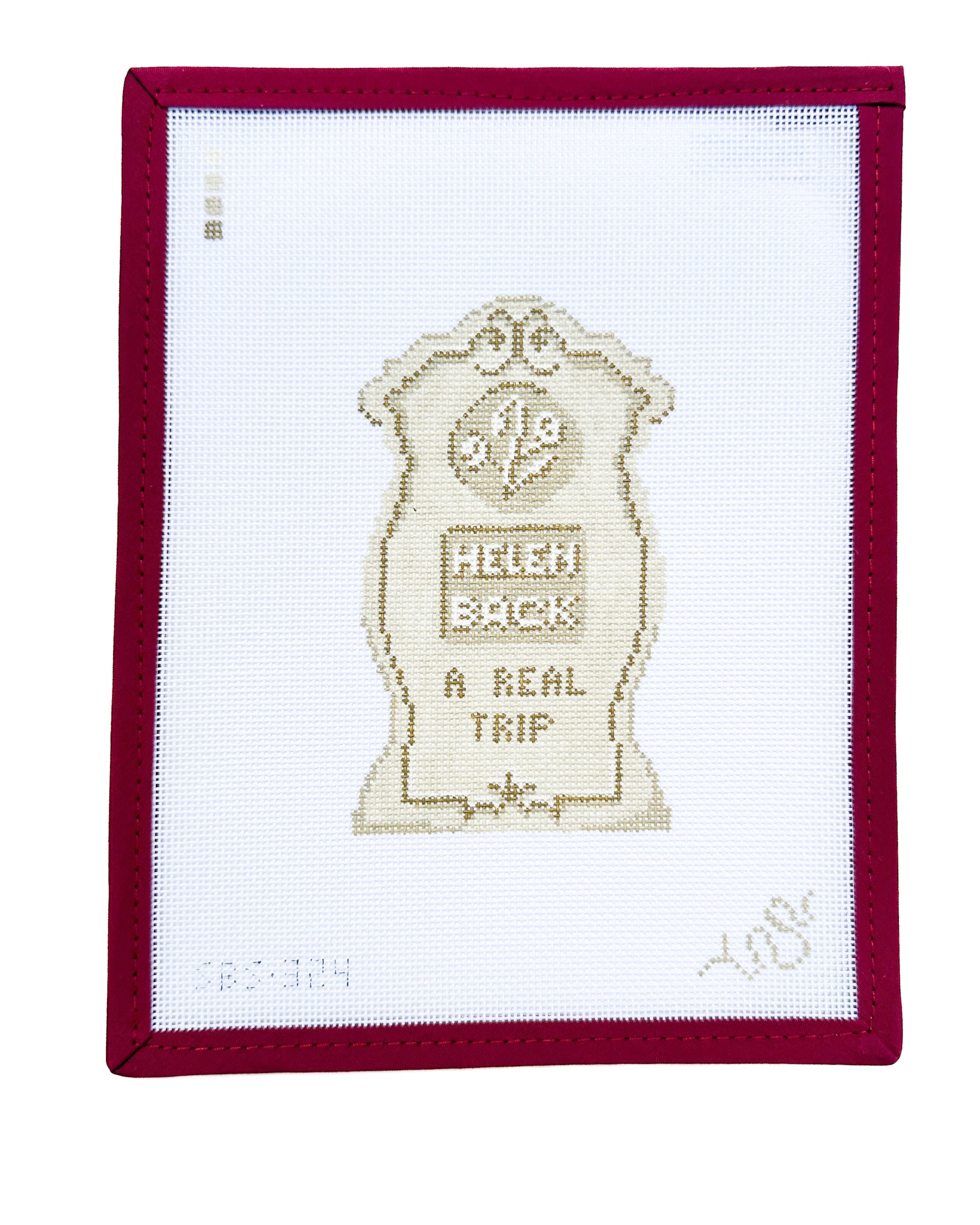 These headstone designs measure 3x5" on 18 mesh. Hand painted and stitch painted.