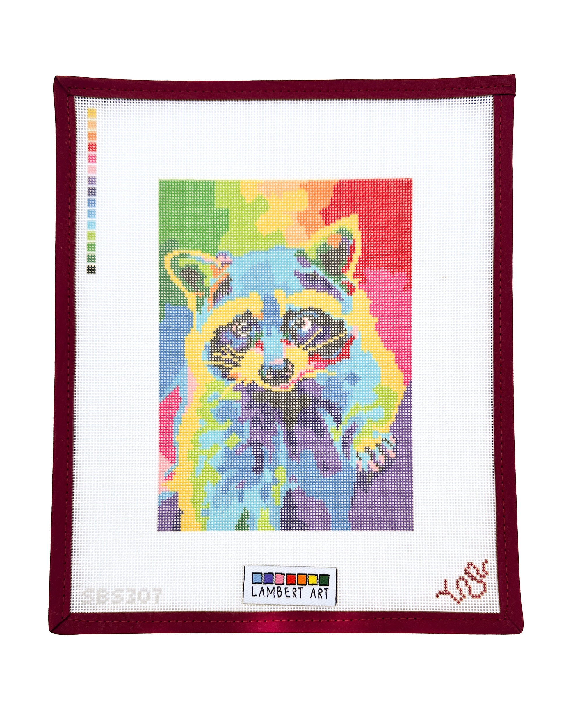 This Stitch Perfect Printed needlepoint canvas is a translation of the gorgeous, bright, and beautiful pet portrait paintings done by Claire Lambert. I am absolutely enamored with her style and I am delighted to be working with her on this collaboration to bring her style of pet portraits to needlepoint. Each of these pet portrait needlepoint canvases are on 18 mesh and they all have a color palette in common. The blacks of the canvases will be printed gray to ensure ease of visibility while stitching. This canvas is 7" tall by 5" wide.