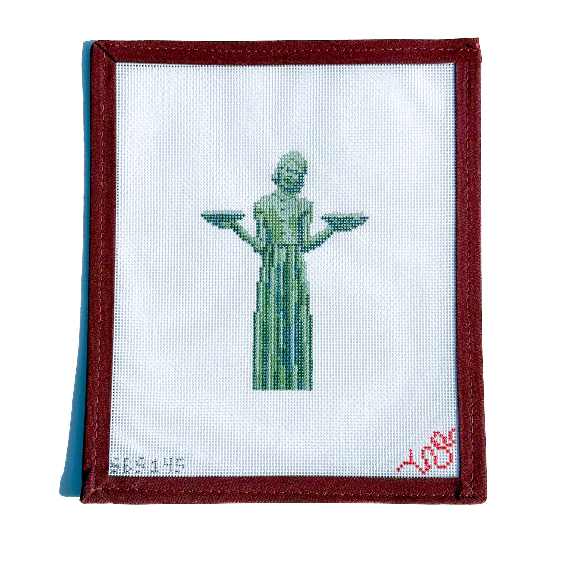 This needlepoint canvas depicts the famous Bird Girl statue sculpted by Sylvia Shaw Judson - made famous by the book “Midnight in the Garden of Good and Evil.” The Bird Girl is now a symbol of Savannah and is on display at the Telfair Museum.