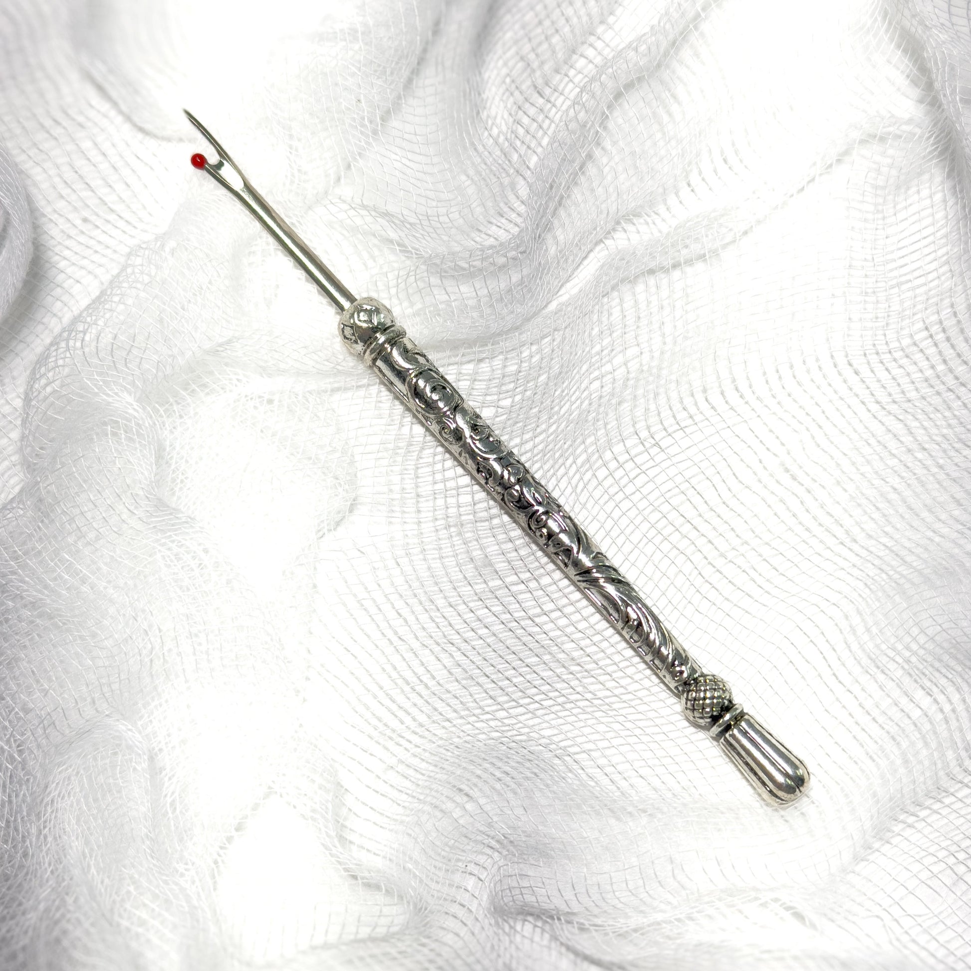 Use this beautiful seam ripper to easily frog your needlepoint canvases when stitching goes awry! Includes a plastic safety cap and a small ball on the point to prevent fabric damage. The vintage-style metal engraved handle makes this a unique gift!