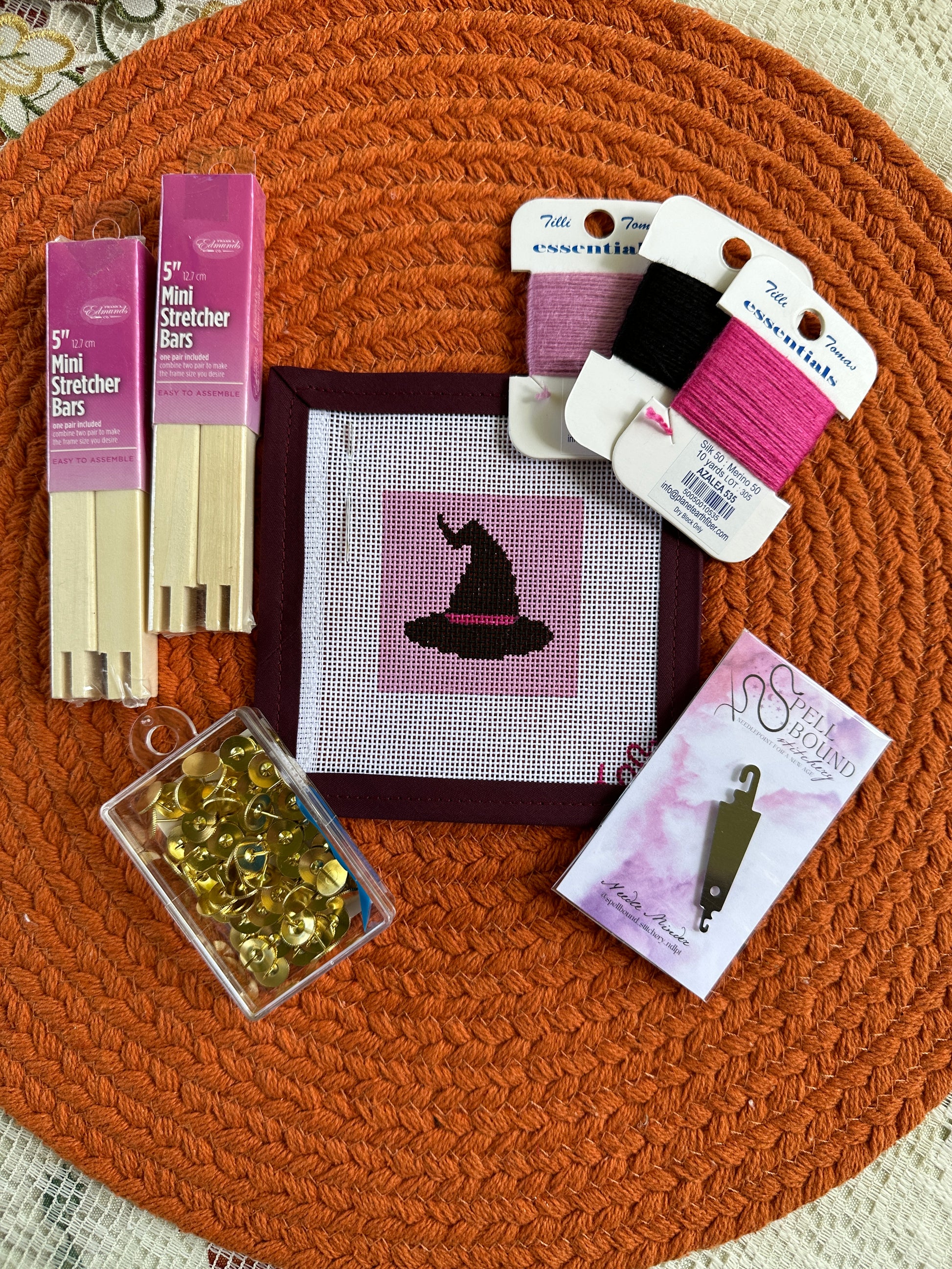 This miniature hand painted canvas is a handy travel sized project, made to be a quick stitch and lots of fun! Perfect for self finishing items including the Evergreen Needlepoint Can Cozies, and an ideal canvas size for the self finishing Shadow Box, this project is great for beginners and experienced stitchers alike!